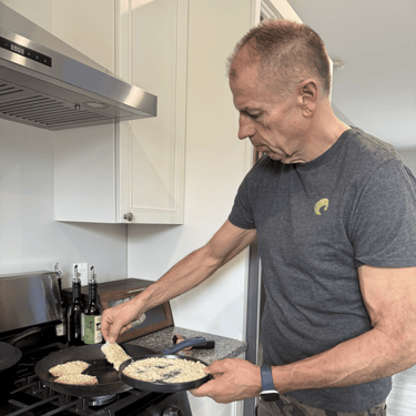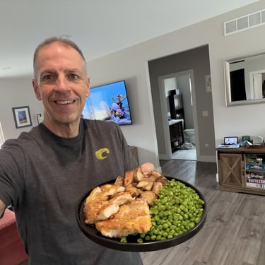 Back at the barn, we at least had a proper walleye meal going from yesterday’s catch. Peas, because apparently, I’m a health guy now. Roasted potatoes, oil free, because we’re leaning into this whole plant-based thing. And panko pan-fried walleye, because balance. If you can’t beat them, eat them. That’s where I’m at right now.