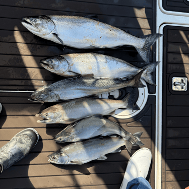 First bite took forever. Eventually scratched out 4 kings and 3 coho, so 7 fish on 13 bites. Not terrible, not jackpot.