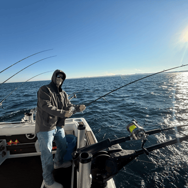 I got to the boat at 5:50am, and there was THE Logan, already unloading his mysterious tackle bag of wizard-level fish-catching gear. Me and Logan dialed in a 12-line spread, then, THE Nick arrived — side note, I’ve realized I only have two “THE” people in my life, and both made the final trip. Coincidence? Probably not.