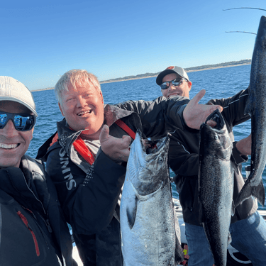 Come on people — you think I’d let the final trip end in a skunk? No way (I’d still be out there!) Eventually, the fish gods woke up, graced us with some mercy, and we boated three absolute hogs — all solid three-year-olds. Three fish. Five bites. Thirty-two pounds total.