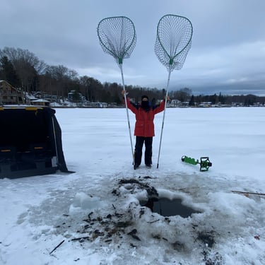 Valley number one involved Surgeon Jenn and a mother daughter vacation that went absolutely sideways. Delta delays stacked up, which led to missed flights, which led to missing a cruise ship boarding, which led to a surprise St. Thomas Plan B, which then somehow led to being stranded because of some political stuff involving Trump that I do not understand and will not pretend to. At the exact same time, I was having a peaceful moment on Upper Hamlin Lake, sitting on six to seven inches of ice, feeling very calm and centered, when bloop, my iPhone 16 Pro Max quietly slid into my ice hole and settled at nine feet of water. Hours of magnet fishing and Nick dragging salmon nets across the bottom later, I found myself at Muskegon Best Buy handing over roughly $2,500 for a brand new iPhone 17 Pro Max. The only upside is that it’s orange. That matters!