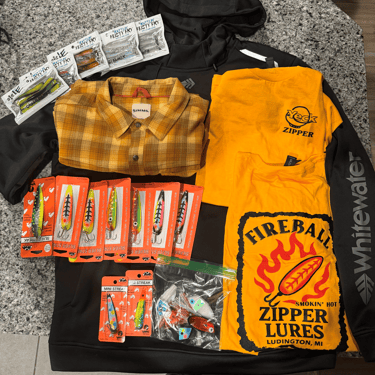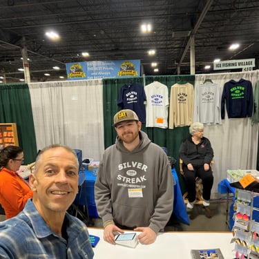 Then it happened. The Yeck booth. There was Ged. Same as last year. I do not live in Ludington, but it feels like home, and seeing Ged in his Yeck lure booth just felt right. I do not know him well at all, but he is Ludington folk, and that counts. Sounds like he has been busy rolling out new colors and sizes and working with places like Frank’s. Buy three Yeck spoons at Frank’s and Ged gives you an old school Fireball free. Everyone should own at least two Fireballs. I own way more than that. If you ever find the old school Fireball, buy it immediately – buy them all! Here is the weird part. Ged talked me OUT of buying spoons. Told me to wait and buy them at Captain Chuck’s instead. I am not sure what kind of reverse sales wizardry that is, but I trusted the process. There was zero chance I was leaving that booth without a Yeck Zipper Fireball shirt though. Bought one for Jenn too. In my head, if I am wearing that shirt, have the lucky Ludington coin in my pocket, a Fireball on port and a Chubster on starboard, fish should basically jump into the boat.