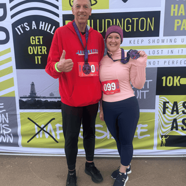 This weekend’s race was called “Run for Your Lives.” Probably a Halloween thing but also appropriate since my main goal before every race is “don’t die.” Couple technical difficulties this time: my watch didn’t start (gloves + cold = disaster), and when it finally did, I somehow triggered Taylor Swift to start blasting at half a mile in. Picture me frantically slapping buttons, freezing, and praying nobody around heard “Shake It Off.” Apple knows best though — it fixed itself — and I finished with a personal best 29:23, first in my age group! Bigger news? Surgeon Jenn ran her first ever 5K. My 1/1/25 run was my first, so I know that feeling. See one, do one, teach one, Jenn.