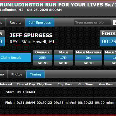 Ludington Lakestride 5K: 29:41 (broke 30:00 — huge deal for me)